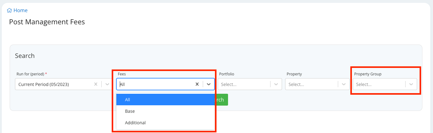 You will now see a new FEES filter on the Post Management Fees page that allows you to only show ALL, Base or Additional Fees (Suppressed fees). You can easily select which type of fees you want to list just before you post the fees.